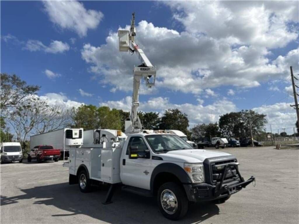 This 2015 Ford F550 4x4 bucket truck is built for high-reach utility work and demanding job sites. Powered by the reliable 6.7L Powerstroke Turbo Diesel engine with 166k original miles, this truck runs strong and has been meticulously maintained. It features a Versalift VST-40I articulating telescopic boom, providing a 45-foot working height, continuous rotation, and a hydraulic material handler.