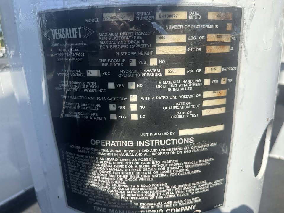 - Aerial Lift: Versalift VST-40-I (Articulating/Telescopic)